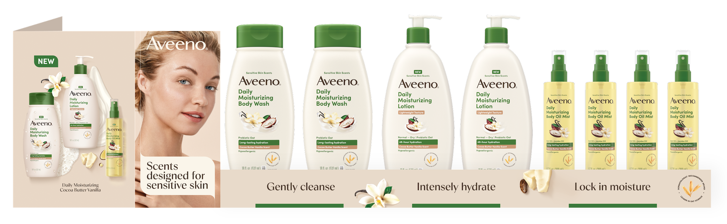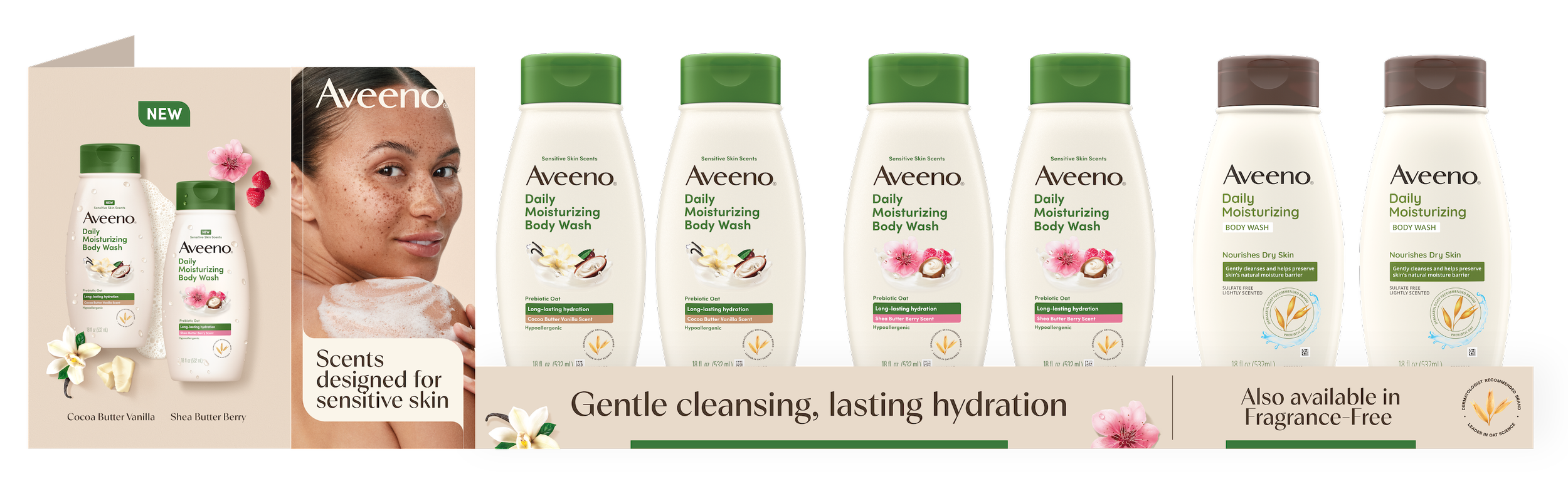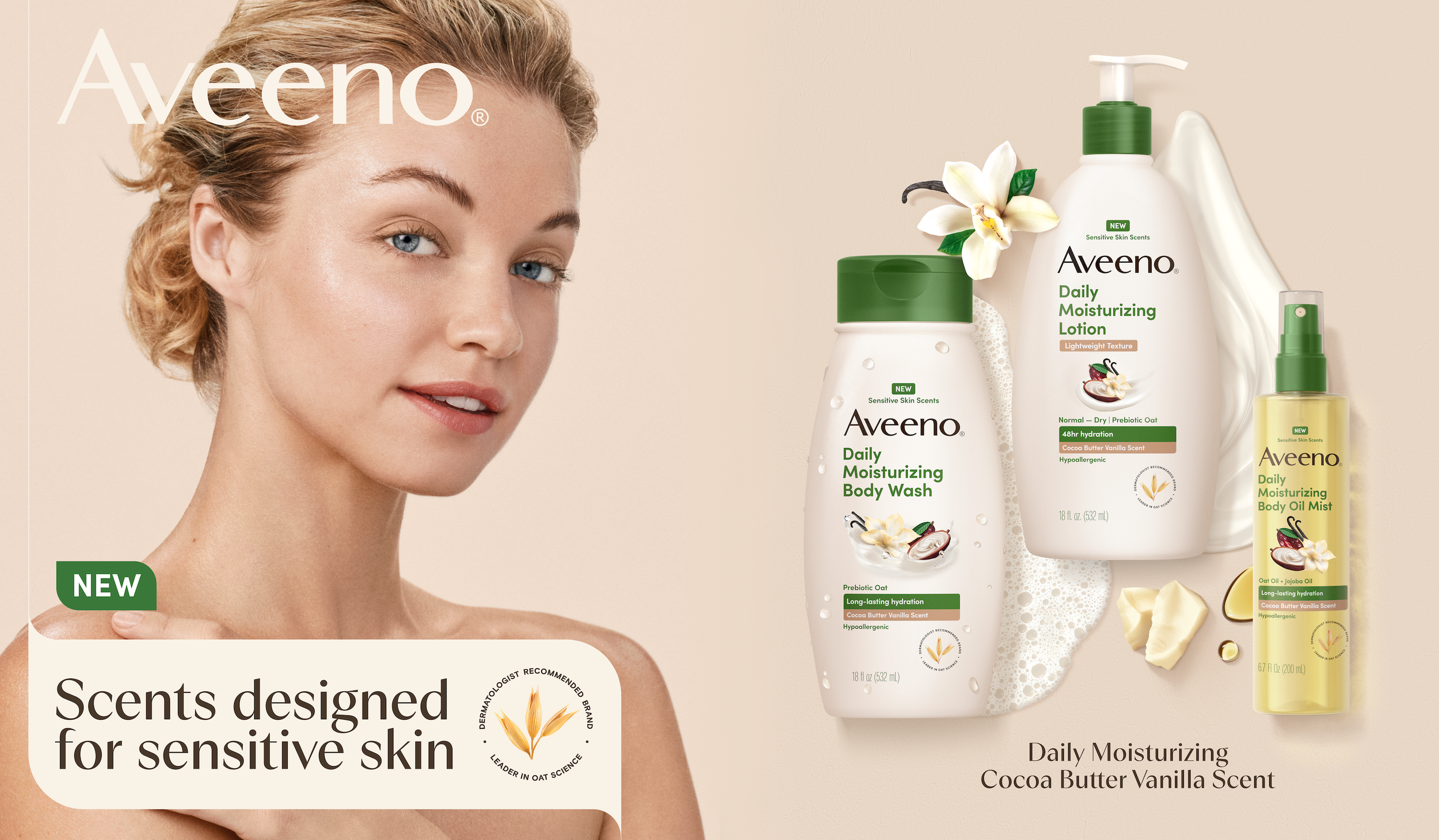 Aveeno® Sensitive Skin Scents were designed, tested and proven to be gentle on sensitive skin, delivering a multi-sensory, indulgent fragrance experience.