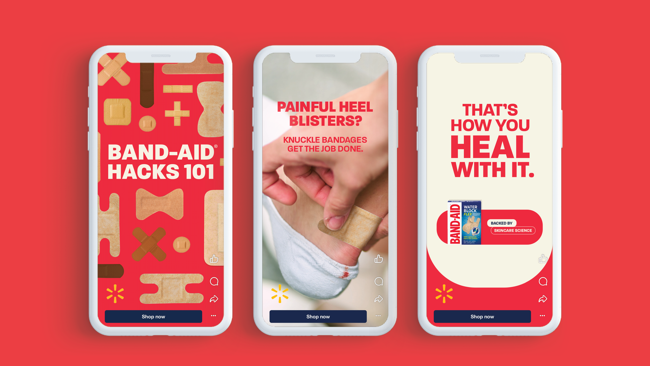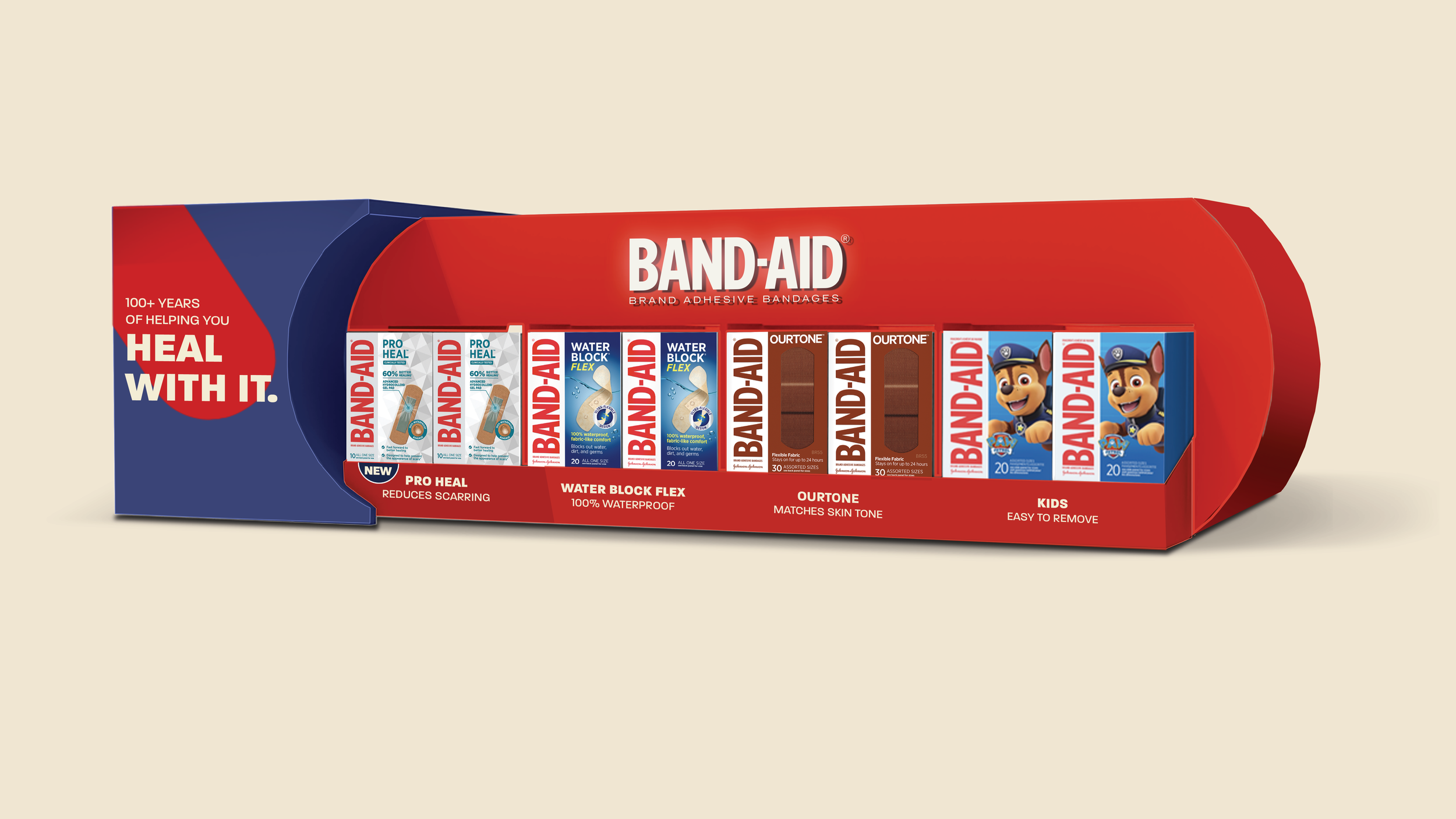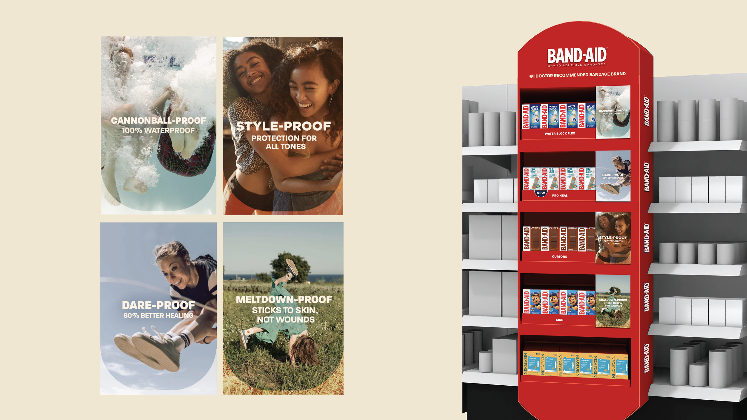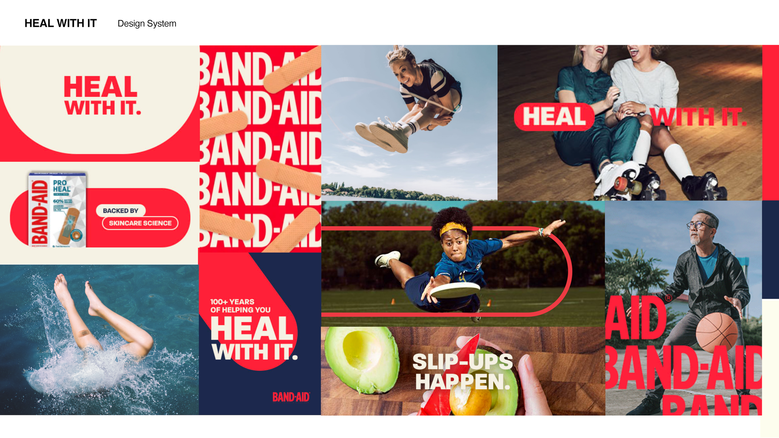 Band-Aid needed a campaign that could do more than sell bandages — it needed to reframe how people think about mishaps altogether. For this project, I developed the "Heal With It" design system and key visuals, building a bold, energetic visual world anchored in real life moments and activated across retail and social touchpoints. The design system received strong recognition from creative leadership internally and praise from the client. Presented as a concept.